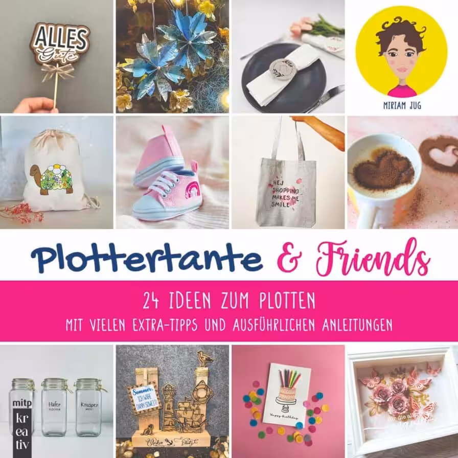 In diesem Buch findest du 24 Anleitungen für Plot-Projekte, die zum Nachmachen und Abwandeln einladen. Die bekannte Plottertante Miriam hat dafür mit elf ihrer liebsten Creatorinnen zusammengearbeitet. Entstanden ist eine Auswahl von vielseitig anwendbaren Plot-Ideen, angefangen bei der Gestaltung von Kleidung und Taschen über die Aufwertung von Alltagsgegenständen bis hin zu personalisierten Geschenken und Accessoires.