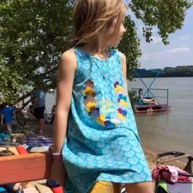 Da meine Tochter aber ein Teil nach dem anderen hat entstehen sehen und nie war etwas für sie dabei, konnte ich natürlich nicht anders und natürlich hat sie auch eines bekommen! Hier habe ich leider ein wenig beim Aufbügeln gepfuscht und der Plott sitzt zu weit unten, aber ihr Kinderherz freut sich dennoch sehr! Und ich mich mit ihm!