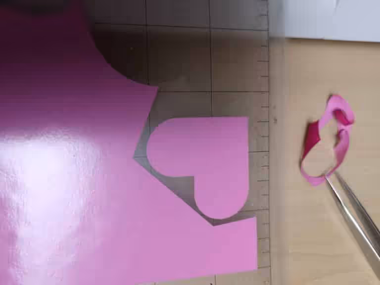 Wie kann ich aber das Herz jetzt so positionieren, dass der Schnitt dann auf jeden Fall nicht über den Rand der vorhandenen Folie hinweg geht, und ich das Herz aber auch nicht zu weit von den Rändern entfernt legen muss, wodurch ich zwar beim Schneiden auf der sicheren Seite wäre, was ja dann aber wieder unnötig Abfall erzeugt?