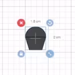 Das letzte Quadrat und der Kreis werden für einen Ausschnitt am unteren Rand der SW benötigt, damit man den Halter über die Stange im Maker stellen kann, auf der die Andruckrollen befestigt sind. Dafür verändern wir zunächst die Größe des Rechtecks zu 2 cm Breite und 1 cm Höhe. Der Kreis erhält einen Durchmesser von 2 cm.