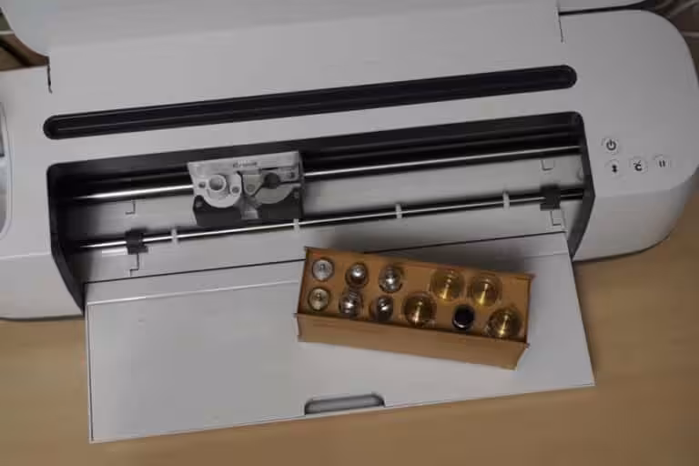 Zunächst habe ich sie in die Fächer in der vorderen Klappe des Makers einsortiert. Mit etwas Geschick passte zwar alles rein, aber beim Auf- und Zumachen des Makers kullerte doch immer einiges durcheinander, und ich hatte Sorge, dass die Werkzeuge dabei leiden.