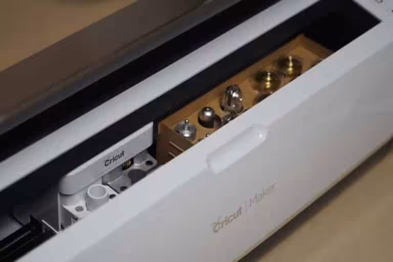 Feinschnittklinge (Fine-Point Blade, silber oder gold), Klinge für verstärkte Stoffe (Bonded Fabric Blade, rosa) und Tiefschnittklinge (Deep-Cut Blade, schwarz)brauchen einen Lochdurchmesser von 1,4 cm
