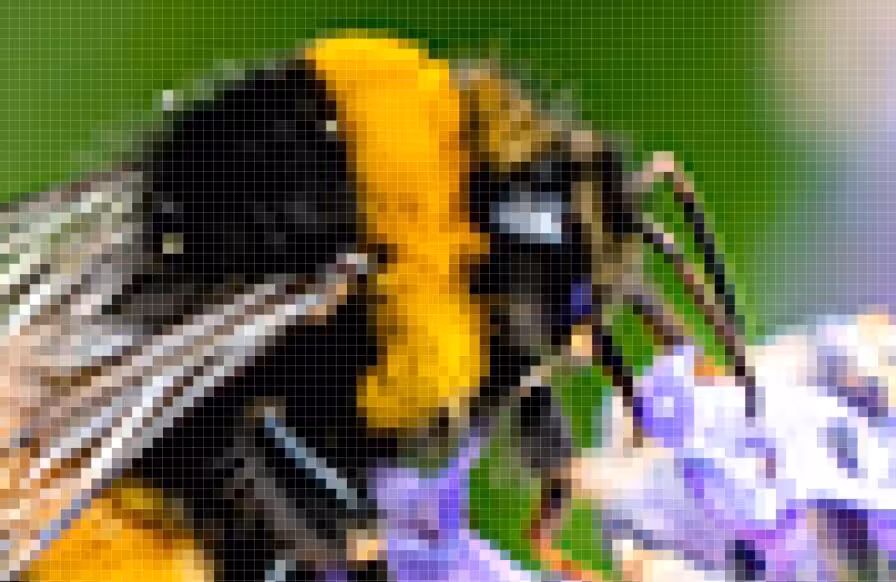 Um das mit den Pixeln mal ein wenig anschaulicher zu machen habe ich ein kleines Hummelchen, das mir im Sommer vor die Linse gekommen ist, gebeten, uns hier etwas Modell zu stehen.