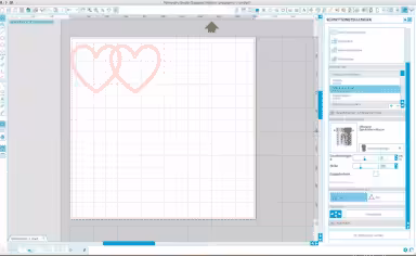 - Als erstes das Design fertig stellen, positionieren und die Matte laden. (Da heute ja noch Valentinstag ist, habe ich mir die zwei Herzen aus der Bibliothek genommen).